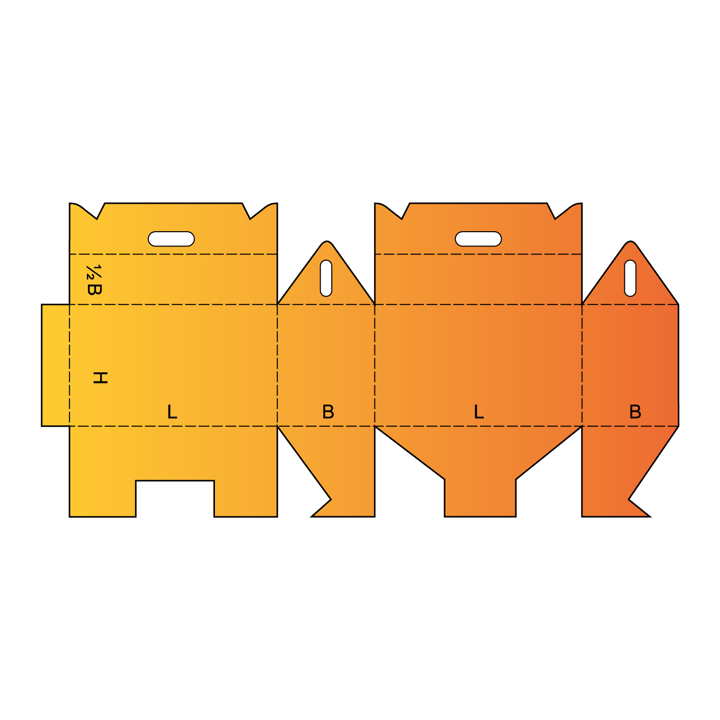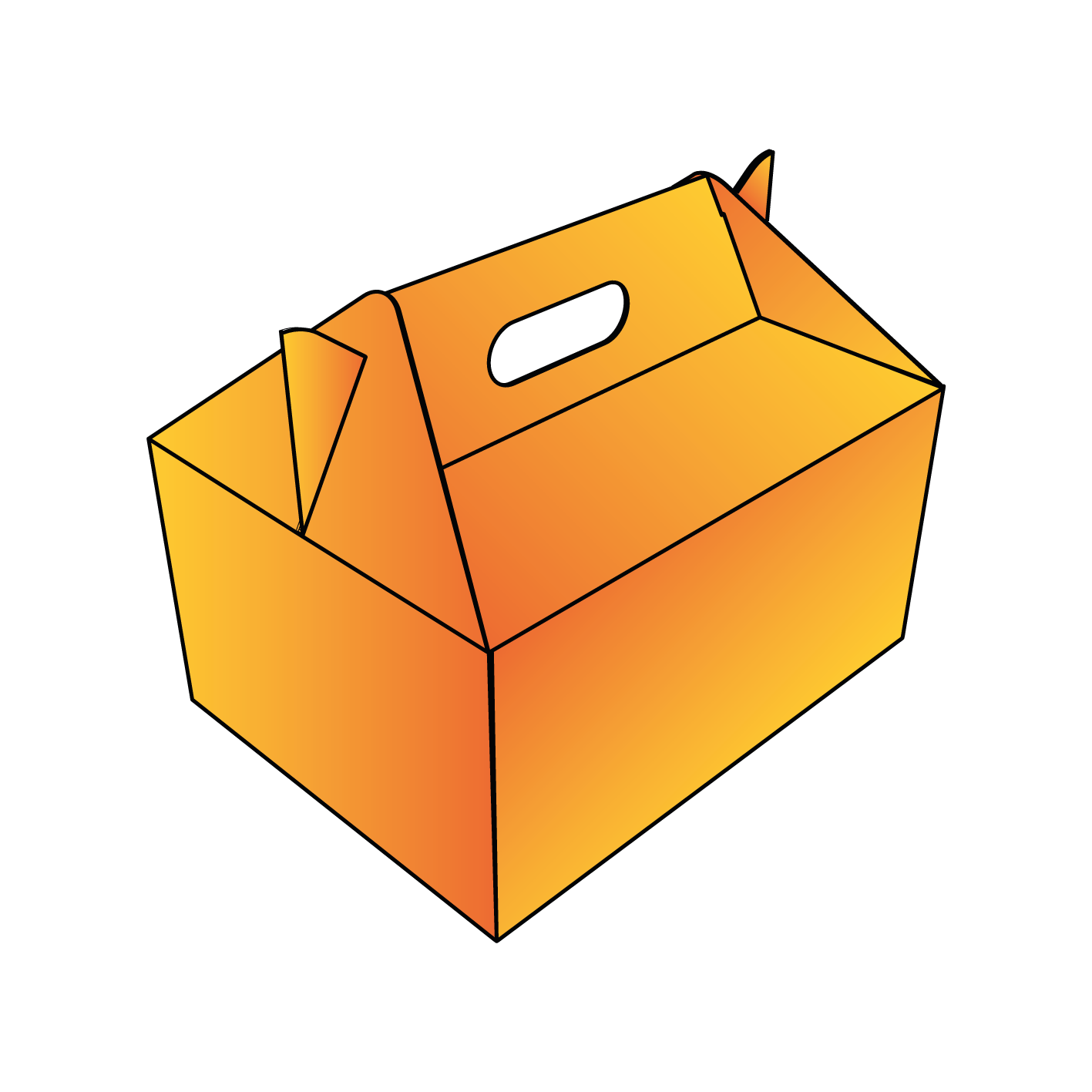 Transportní krabice, takzvaná „odnoska“. Má široké využití, jak při balení dárkových předmětů, tak i v potravinářství jako obalový materiál sloužící k transportu zákusků a jiných pochutin. Má velice pevné dno i víko s vyřezanou rukojetí a zámky. Krabici jednoduše složíte a víko zajistíte zámky aby nedošlo k jejímu samovolnému otevření. Je tvořená z jednoho dílu, předlepená a dodaná na plocho. Na dotaz je možno krabice dodat již slepené.